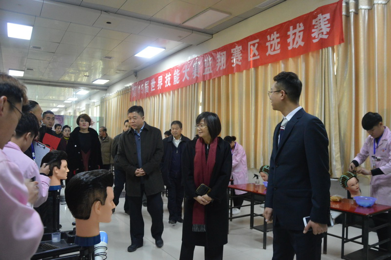 周春艳副厅长巡视了第45界世界技能大赛山东蓝翔技师学院选拔赛美容美发项目比赛现场,以及汽修、中式烹调等骨干专业建设情况;山东蓝翔技师学院院长荣兰祥汇报了学院建设情况。