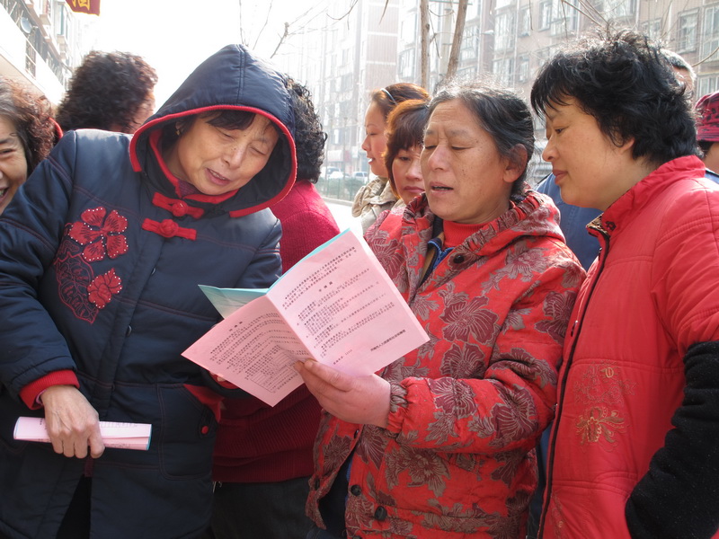 群众拿到《居保参保明白纸》学习 为保证在吴家堡的试点工作顺利开展,试点初期,区人社局农保处、街道办事处、人社中心、办事处各管区、村居,大家集体出动,下基层、摸情况,联系村组座谈。首先对被征地村的人数、征地批文、征地面积、社保补贴等进行了全面调查,以国土部门提供数据为基础,分别与相关村核实相关数据,分析在工作开展中有可能出现的问题矛盾,做到心中有数。想要顺利推进被征地农民参加居民养老保险工作,就要先让老百姓弄清楚政策。可是,作为一项新政策,别说老百姓,很多基层业务人员也没有在第一时间吃透。为此,槐荫区邀请市人社局相关处室负责同志和社保局业务专家针对《济南市被征地农民参加居民基本养老保险实施细则》进行了专题培训,全面分析、详细解读,使基层经办人员及村居负责人及时熟悉政策、吃透文件精神。 针对被征地农民最关心的怎样分配社保资金、什么时候领取待遇、能领多少钱、参保人员死亡后养老金如何处理等热点现实问题,槐荫区统一印制了《参保明白纸》进行宣传。同时,区人社局农保处多次在街道办事处和村居现场办公,直面村两委干部和群众代表,“零距离”解答村干部和群众提出的居民养老政策问题。 由点及面 全区被征地农民参保工作全面启动